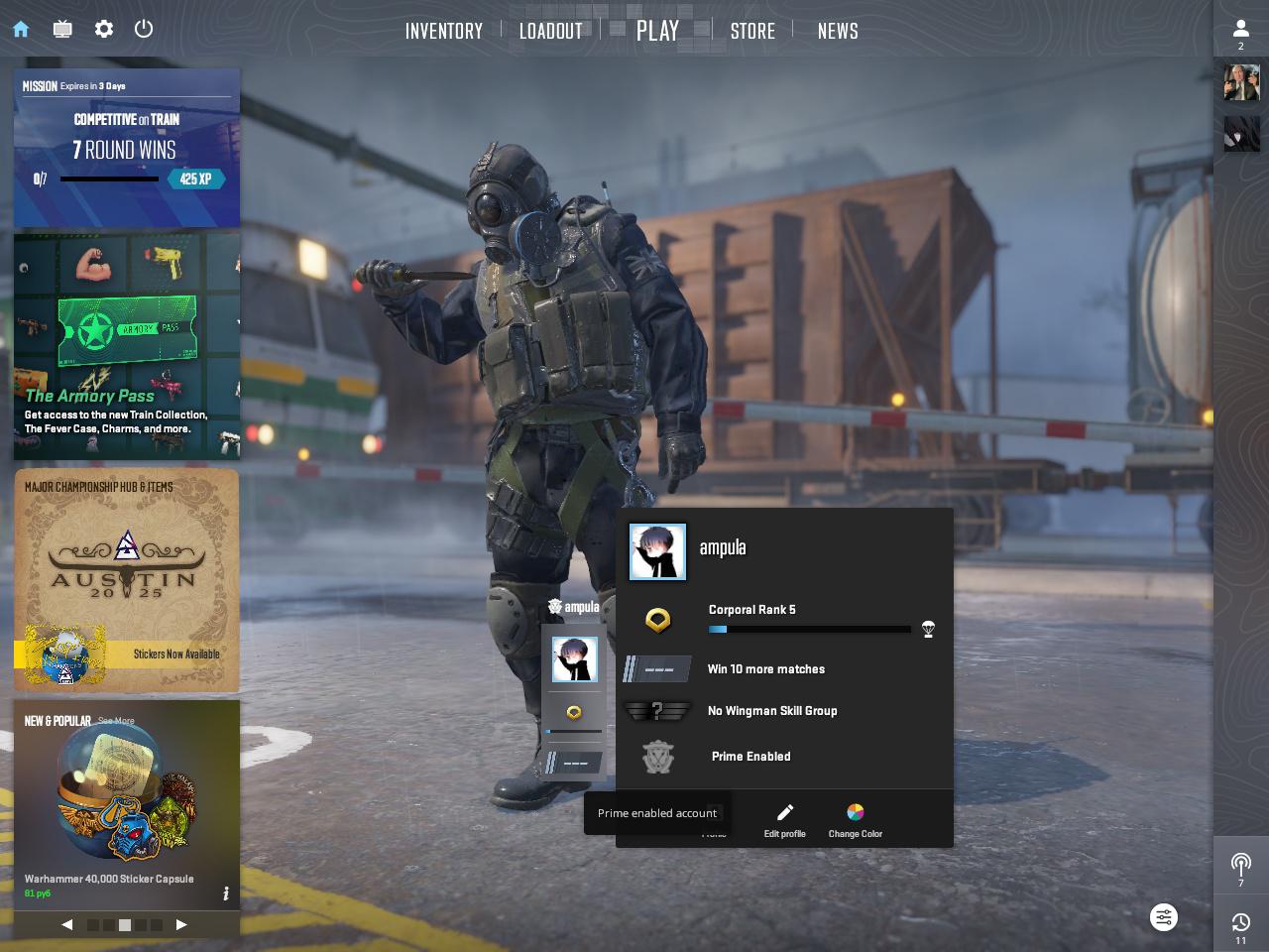 ⭐️Звание: Глобал;🌟Prime Status: Есть;✨Предметов в инвентаре: 122;💲Стоимость инвентаря: 85000 руб;