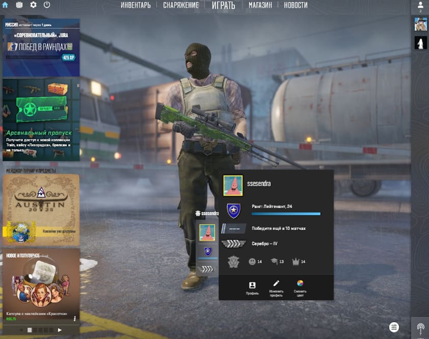 ⭐️Звание: Глобал;🌟Prime Status: Есть;✨Предметов в инвентаре: 122;💲Стоимость инвентаря: 85000 руб;