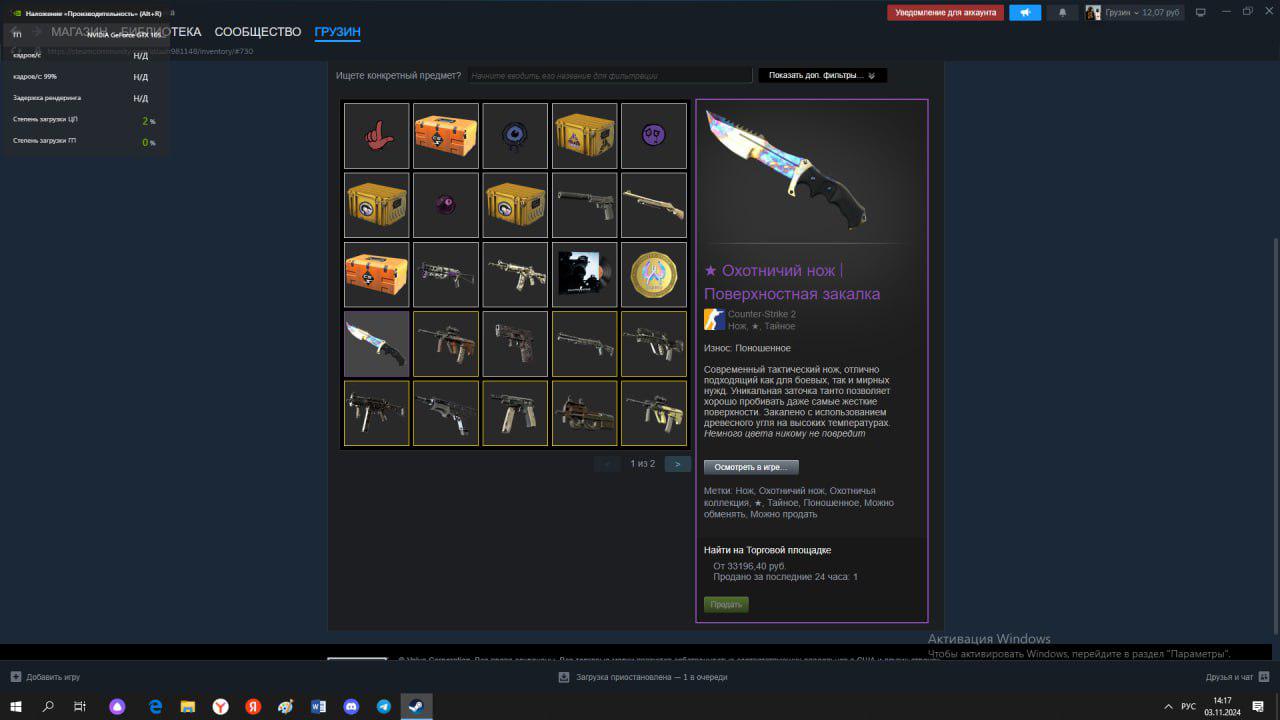 ⭐️Звание: Глобал;🌟Prime Status: Есть;✨Предметов в инвентаре: 122;💲Стоимость инвентаря: 85000 руб;