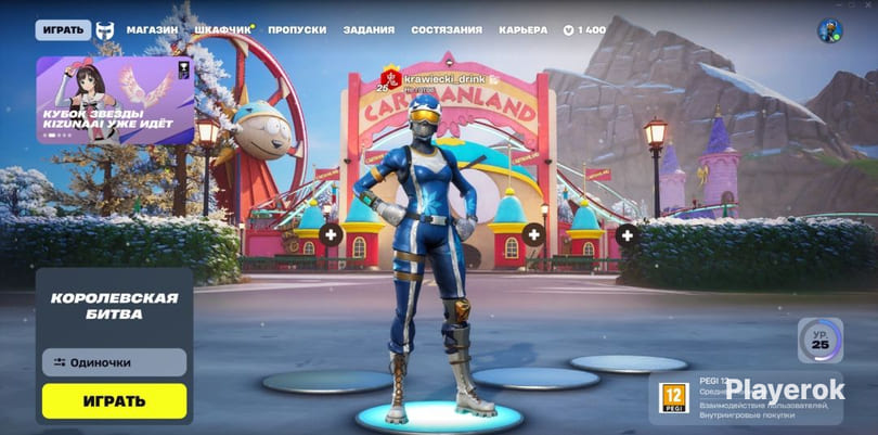 ⭐️ Боевой пропуск: 3 сезон, 2 глава (13 сезон) ⚔️ PVE, PVP, 💥 Всего скинов: 126 🔥 Топ скины: Джулс, Kit, Джон Уик, Айконик, Карась, Валькирия 💰 390 V Bucks
