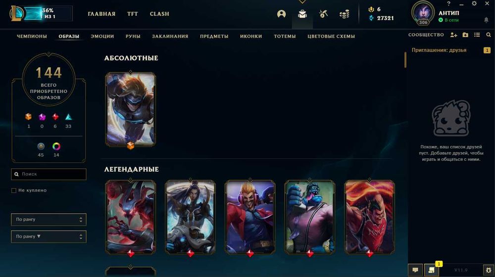 ✨Кол-во скинов: 144 (1 абсолютка, 6 легендарок, 35 эпиков и 47 архивок)