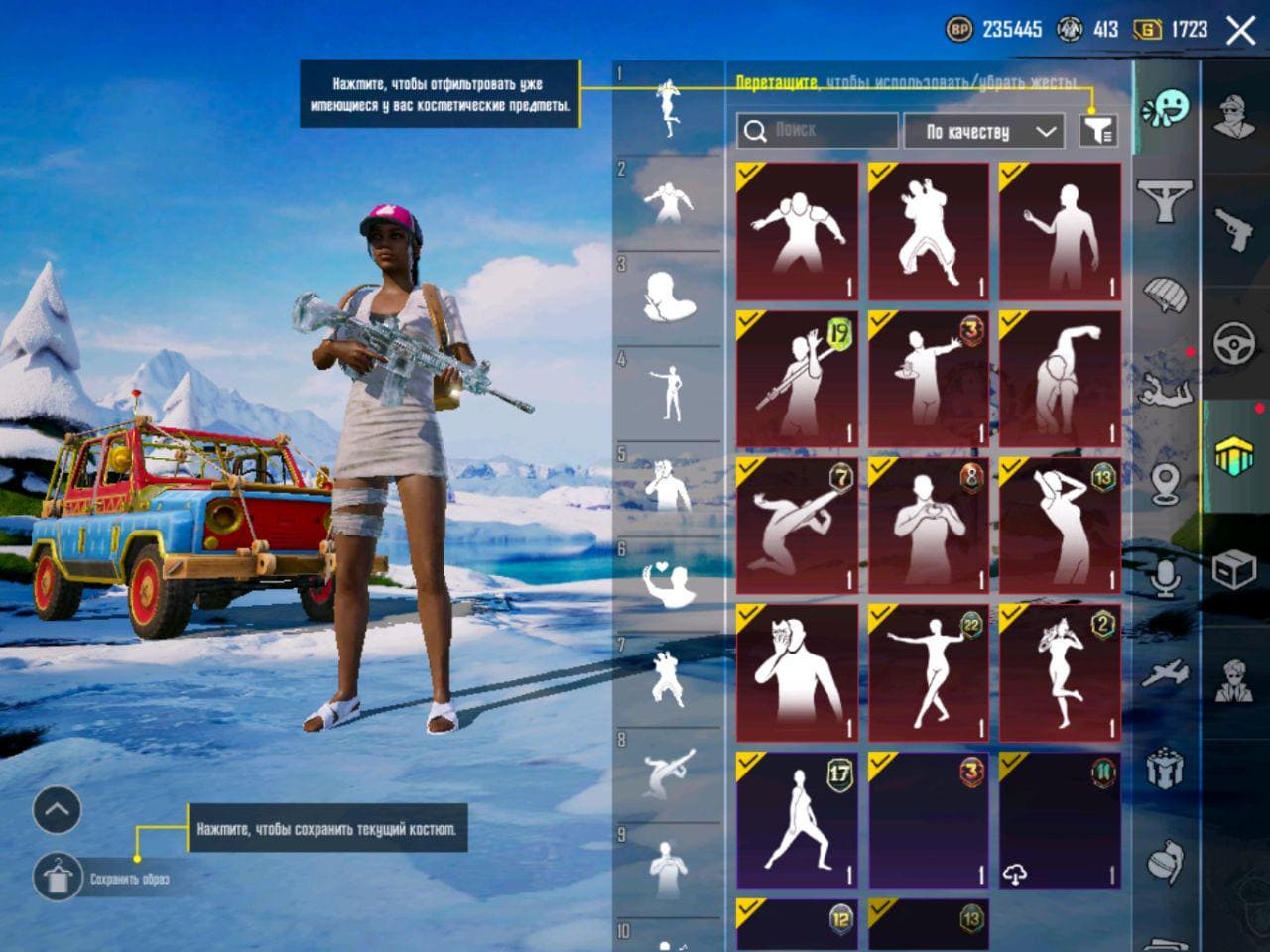 👚 Костюмы: 54 🔫 Скины оружия: 36 ✨ Улучшенные: M416 "Ледяник" (Lv.3) 🚗 Транспорт: 3 ⭐ Royale Pass: с 4 сезона 👤 Уровень: 54 🏆 Ранг: Мастер
