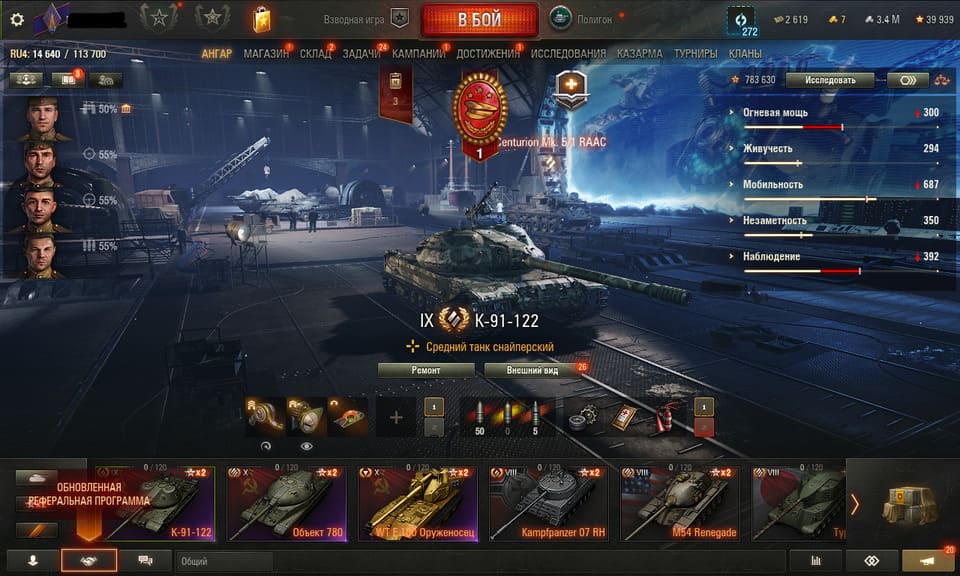🎌Количество боев: 21 000; 🏆Процент побед: 51%; 💰Количество кредитов: 3.7 млн