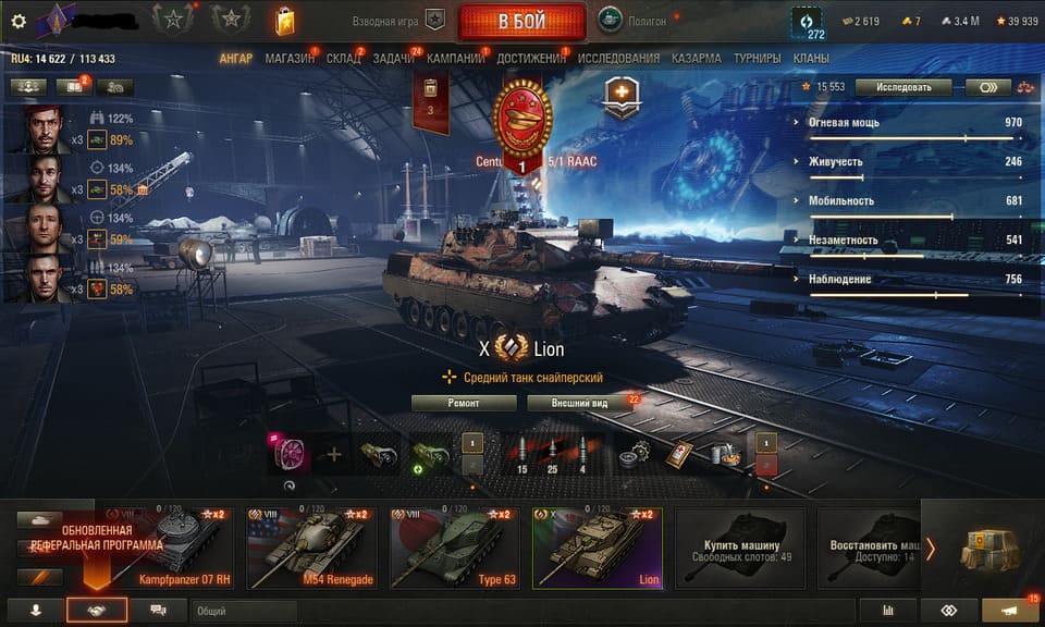 🎌Количество боев: 32 000; 🏆Процент побед: 51%; 💰Количество кредитов: 285 тыс