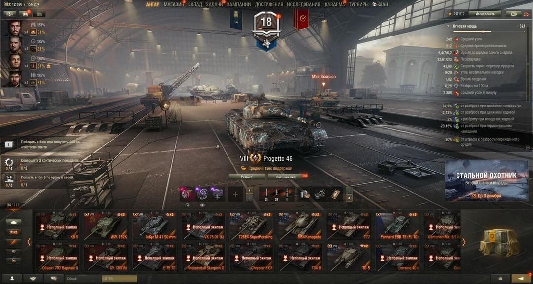 🎌Количество боев: 5 000; 🏆Процент побед: 46%; 💰Количество кредитов: 5.84 млн